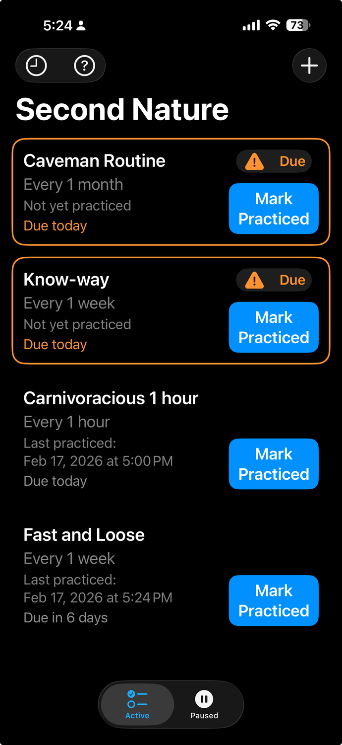 Second Nature is a focused practice companion for people who want their skills to feel automatic.